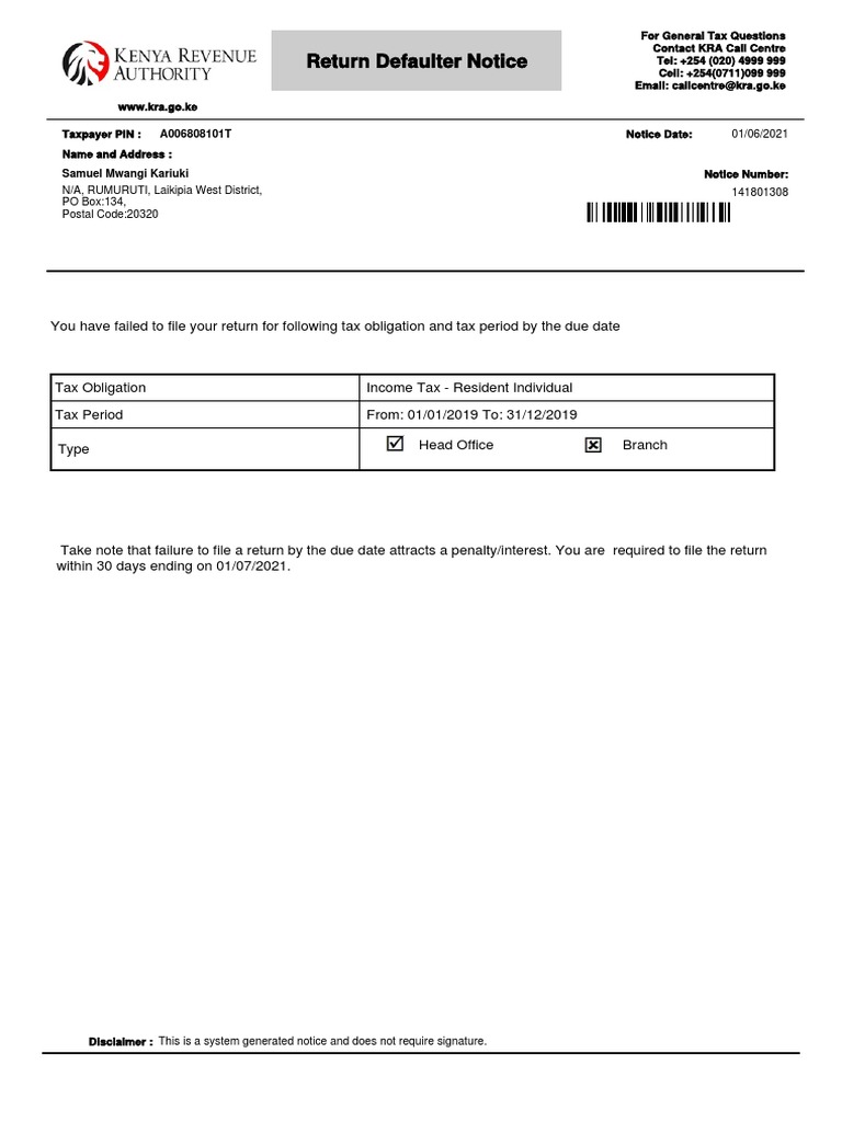 Return Defaulter Notice PDF